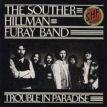 Trouble in Paradise is the second, and last, album by The Souther-Hillman-Furay Band, released in 1975 on Asylum Records. It peaked at number 39 on the Billboard albums chart.[2]