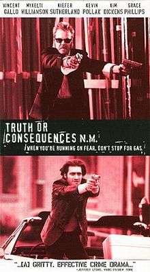 Truth or Consequences, N.M. is a 1997 American neo-noir film directed by Kiefer Sutherland[2] and features Sutherland, Vincent Gallo, Mykelti Williamson, Kevin Pollak, Max Perlich, Rod Steiger and Kim Dickens among others. The film's executive producer was Phillip M. Goldfarb. The noir is about a drug heist gone seriously wrong.