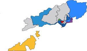 | Colours on map indicate winning party for each constituency. |