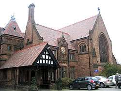 The building of the home was completed in 1884 and was designed by Alfred Waterhouse. It was built for Mrs Anne Turner as a memorial to her recently deceased husband and son. Her husband was Charles Turner, a Liverpool merchant who originated from Yorkshire.[2] He had been chairman of Liverpool Dock Board, and a Member of Parliament.[3] Charles Turner died in 1875, followed by his son five years later. The first full title of the home was “The Turner Memorial Home of Rest for Chronic Sufferers”. By the 1980s the fabric of the building had deteriorated, and in 1984 a Centenary Appeal was launched to raise money for essential repairs and improvements. Following this, as nursing standards and regulations changed, more modern accommodation was provided. In 1993 the Eric Fischer Wing was built, containing 44 bedrooms with en-suite facilities. This was followed in 2000 by the Ian Tod Wing, which incorporated a rehabilitation unit, a lounge, and six more bedrooms. The home is dual-registered as a residential and a nursing facility.[2] In addition to medical and nursing care, chiropody, dental care, an optician's service, and hairdressing are provided. Parts of the main building continue to be used for communal activities, including dining, and games such as pool and snooker. Religious services are held twice a week in the chapel. Holidays and outings are arranged for the residents. The work of the home is supported by a League of Friends.[4]