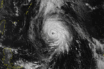 Forming out of an area of disturbed weather on October 13, Ivan gradually intensified into a typhoon as it tracked steadily to the west-northwest. On October 15, the storm underwent rapid intensification and reached an intensity corresponding to Category 5 status on the Saffir–Simpson Hurricane Scale. Late on October 17, Ivan reached its peak strength with winds of 295 km/h (185 mph) and a barometric pressure of 905 hPa (mbar). Shortly thereafter, the typhoon began to weaken as it approached the Philippines. Ivan eventually made landfall in northern Luzon with winds of 220 km/h (140 mph) on October 20 before weakening to a tropical storm the next day. The storm then curved northeastward and became extratropical on October 25, dissipating the following day.[26][40] During its existence, Ivan was monitored by PAGASA and designated with the local name Narsing.[12]