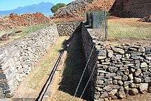 On each of the yácatas was a temple made of wood, in which the most important rites of the Purépecha people and government took place, including burials, of which about sixty have been found.[13] The burials that have been excavated contain rich grave goods and are probably of kings and high priests.[2][3] Three of the yácatas remain unreconstructed.[14]