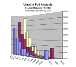 - ^ Razumkov Centre: 8 лютого 2006 Наміри голосування на виборах до Верховної Ради України та ідеологічні орієнтації громадян (Центр ім.О. Разумков) (Conducted 26–31 January 2006, published 8 February, Ukrainian only, edited)