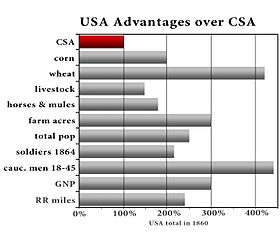The Union had large advantages in men and resources at the start of the war, and the ratio grew steadily in favor of the Union. In the chart, "cauc men" means white men (Caucasian).