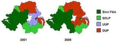 The DUP won the most out of the 2005 parliamentary elections, taking four seats from the UUP to become the largest Northern Irish political party at Westminster. Sinn Féin managed to take Newry and Armagh from the SDLP, though the SDLP did gain South Belfast from the UUP.[13]