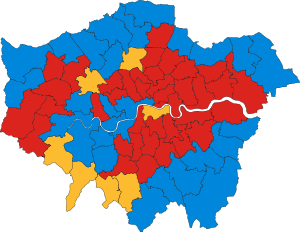 In contrast to the overall result in the United Kingdom, and particularly England, Labour came first in London in terms of votes and seats. Labour's vote and seat share declined for the third consecutive election. However, they still won an absolute majority of seats (52%).
