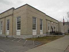 US Post Office-Endicott is an historic post office building located at Endicott in Broome County, New York. It was designed and built in 1936 and is one of a number of post offices in New York State designed by a consulting architect for the Office of the Supervising Architect of the Treasury Department, Walter Whitlack. It is a one story, nine bay steel frame, cream-colored brick clad building on a raised granite-clad foundation executed in the Colonial Revival style. The interior features a 1938 mural titled "Excavating for the Ideal Factory" by Douglass Crockwell.[2]