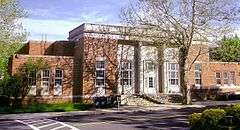 US Post Office-Scarsdale is a historic post office building located at Scarsdale in Westchester County, New York, United States. It was built in 1937 and designed by consulting architects Schultze and Weaver for the Office of the Supervising Architect. It is a symmetrically massed red brick building containing limestone trim in the Classical Revival style. It is composed of a two-story central section with flanking one story wings. The front facade features a three-bay recessed limestone portico supported by a pair of tall slender Doric order columns. The lobby features two murals by Gordon Samstag titled "Law and Order in Old Scarsdale" and "Caleb Heathcote Buys the Richbell Farm."[3]