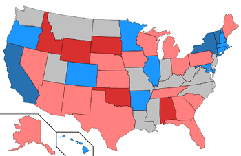 - A state with a shaded background indicates a gubernatorial seat being held by the party opposite of the state's partisan leanings.