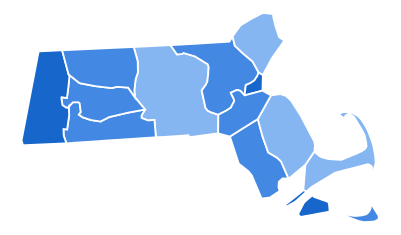 | Middlesex | 64.0% | 440,862 | 34.5% | 237,815 | 1.5% | 10,283 | +2.5 |