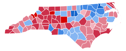 | Wake | 57.5% | 247,914 | 42.5% | 183,291 | 431,205 |