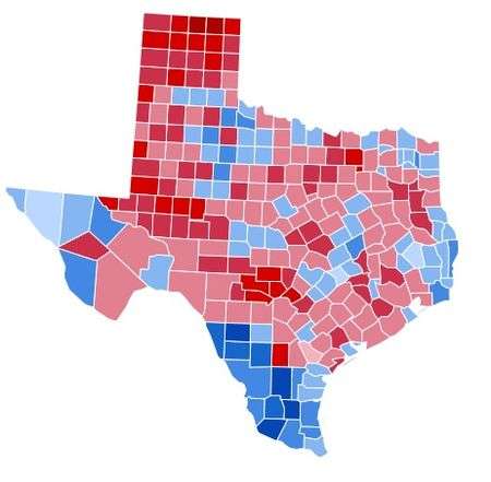 Texas weighed in for this election as 2% more Republican than the national average.