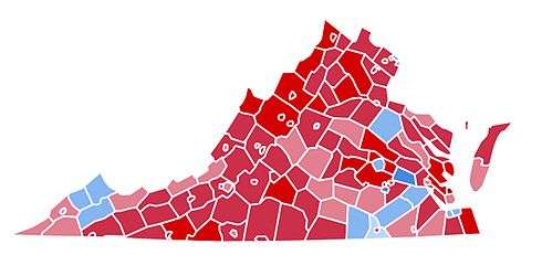 Virginia weighed in for this election as 5% more Republican than the national average.