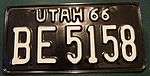 | 1966 | White on black, "UTAH 66" at top | none | AB 1234 | AA 1000 to approximately FB 9999 | ||