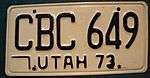 - ↑ "Utah License Plates". allaboutlicenseplates.com. Retrieved July 5, 2015.
