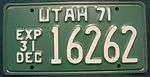 1967 | White on green, "UTAH 67" at bottom | none | AB 1234 | AA 1000 to approximately FD 5000 | |