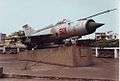 The MiG-21MF has 8 victory stars painted on its nose, plaque states that one of the victories was a B-52D model, shot down on 27 December 1972 by Pham Tuan. This aircraft is displayed carrying an AA-1 Alkali radar guided missile inboard of an AA-2 Atoll IR-homing missile