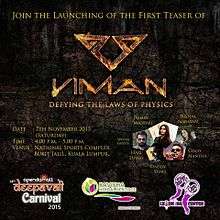 Viman (Tamil: விமான்) is an upcoming Malaysian Tamil supernatural film written & directed by A.M. Kishok, produced by Avaraa Creationz, co-produced by Garuda Utama Production, had musical score by Daddy Shaq and choreographed by Vassan Kumaran. Starring Kishok in the lead role with Jasmin Michael.The film revolves around a middle-aged man and the mysterious happenings in him with one objective, one mission and vision. The film was set to release on 2016.
