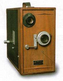 In 1924, Vincent built his first 35 mm long-roll camera which he intended to use for taking school pictures, but another photographer bought the camera from him for $100 (about $1,300 in 2012 dollars). He made a second camera, but quickly sold it also. As a result, he dropped the idea of becoming a school photographer and instead began building cameras for sale under the name VE-JA-DE Products (from his initials, V.J.D.).[9] They are the first documented mass-produced cameras specifically designed for school photography, starting a trend that has spread to high schools throughout the U.S.[2] Vincent hand built all his cameras from walnut that he selected himself. Many of the parts such as the rollers and various aluminum pieces were also handmade. One of those cameras is now in the George Eastman House (Kodak) Museum in Rochester, New York. Another camera is in the Vaughn-Applegate Collection of the Shiloh Museum of Ozark History in Springfield, Arkansas.[10] Two others are in the DigiCamHistory.Com collection. Photos of eighteen different variations of Dunker cameras may be seen on the DigiCamHistory.Com web site, 1950s page, Vincent Joseph Dunker.