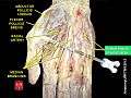 ![]() Superficial palmar nerves. (Deep branch of ulnar and superficial branch of ulnar labeled at center right.) | |