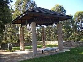 Voyager Point takes its name from the commemorative park which was established following the loss of HMAS Voyager with the loss of 82 lives after the destroyer collided with the aircraft carrier HMAS Melbourne in February 1964.[2] This area was formerly the East Hills Naval Estate, which contained about 70 married quarters for families of members in the Royal Australian Navy.