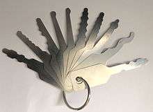 Some wafer tumbler locks use a stack of closely spaced wafers designed to fit a specific contour of a double-sided key and work on the principle of a carpenter's contour gauge.
