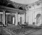 The Waldorf State Apartments, consisting of nine suites, were located on the second floor. The apartments, including the Henry IV Drawing Room, featured 16th and 17th century French and Italian antiques which Boldt and his wife had brought back from Europe.[71] Francois V Bedroom was a reproduction of the room at the Palais de Fontainebleau, and over the years was occupied by the likes of Li Hung-Chang of China, Chowfa Maha Rajiravuth, Prince of Siam, and Albert of Saxe-Coburg.[72] The apartments had their own music room and a banquet hall to seat 20, with a handsome china collection including 48 Sevres plates with European portraits.[73] There were about 6,000 lights in the hotel, with as many as 1,000 were small candelabra lamps mounted in specially designed fixtures.[74] The electric fixtures were all furnished by the Archer & Pancoast Manufacturing Company, of New York, while the contract for the general installation work was carried out by the Edison Electric Illuminating Company, of New York, the actual work of wiring being done by the Eastern District of the General Electric Company. The building was wired throughout on the system of the Interior Conduit and Insulation Company.[74]