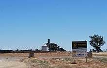 It lies on the Oaklands railway line, Victoria which is a broad gauge branch operated by Victorian Railways. The station has a wheat silo which is its main reason for being.