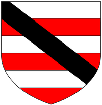 The first member of the Radcliffe family (later of Warleigh) to be recorded is John Radcliffe (d.1560) of Kingset and Mary Tavy,[44] Devon,[45] a tenant-in-chief of Queen Elizabeth I. The arms of Radcliffe of Warleigh were: Argent, a bend engrailed sable a canton of the first charged with a horse's head sable. These arms, without the canton, were the arms of Robert Radcliffe, 1st Earl of Sussex (c.1483–1542), KG and also of the Radcliffe Baronets (created 1813). The family of de Radclyffe which first bore these arms originated at the manor of Radcliffe in Lancashire. Richard de Radclyffe was Seneschal and Minister of the Royal forests in Blackburnshire and accompanied King Edward I (1272–1307) in his wars in Scotland and received from him a grant of free warren in all his demesne lands at Radcliffe.[46] The descent of the Radcliffe family of Warleigh was as follows:[47]