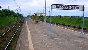 Warszawa Dawidy railway station is a railway station in the Ursynów district of Warsaw, Poland. It is served by Koleje Mazowieckie, who run services from Warszawa Wschodnia to Góra Kalwaria and Skarżysko-Kamienna.