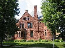 The Eugene Merrill House, at 2116 Second Avenue South, was built in 1884 by banker and lawyer Eugene Merrill,[2] to designs by William Channing Whitney (1851–1945). The Merrill House is the oldest mansion in the district. Its rusticated red sandstone, bold massing, polygonal tower and characteristic clustered fenestration are marks of the Richardsonian Romanesque architectural style. It is now owned by Rhett A McSweeney and is the offices of McSweeney/Langevin.