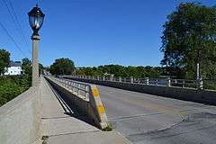 The Washington Avenue Bridge in Iowa Falls, Iowa is an attractive concrete two-span open spandrel arched bridge that brings Washington Avenue over the Iowa River. Originally it carried US 20. It was built in 1934 by the Weldon Brothers for $51,710.55.[2]