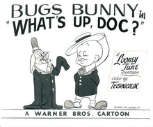 What's Up, Doc? is a Looney Tunes cartoon directed by Robert McKimson and released by Warner Bros. Pictures[1] in 1950 to celebrate Bugs Bunny's 10th birthday that year, in which he recounts his life story to a reporter from the "Disassociated Press". Bugs talks about his birth, his rise to fame, the slow years, and when famous Vaudeville performer Elmer Fudd chooses him to be part of his act. Eventually the duo comes upon their classic formula of Hunter vs. Hare. The short also was the first to use the title card music which would continue to be used in Bugs Bunny's cartoons.