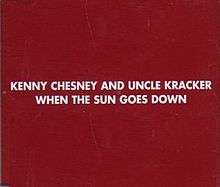 "When the Sun Goes Down" is a song written by Brett James, and recorded by American country music artist Kenny Chesney and Uncle Kracker. It was released in February 2004 as the second single and title track from Chesney's album of the same name. The song reached the top of the Billboard Hot Country Singles & Tracks chart on April 3, holding the number one position for five weeks. It also reached number 26 on the Billboard Hot 100 chart.[1] It was Uncle Kracker's first appearance on the country music charts, his next one being Smile.