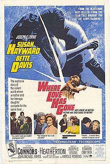 Where Love Has Gone is a 1964 American Technicolor drama film in Techniscope made by Embassy Pictures, Joseph E. Levine Productions and Paramount Pictures. It was directed by Edward Dmytryk and produced by Joseph E. Levine from a screenplay by John Michael Hayes based on the novel of the same name by Harold Robbins. The music score was by Walter Scharf, the cinematography by Joseph MacDonald and the costume design by Edith Head.