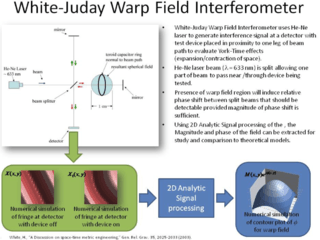 The White–Juday warp-field interferometer is an experiment designed to detect a microscopic instance of a warping of spacetime. If such a warp is detected, it is hoped that more research into creating an Alcubierre warp bubble will be inspired. A research team led by Harold "Sonny" White in collaboration with Dr. Richard Juday [1] at the NASA Johnson Space Center and Dakota State University are conducting experiments but results so far have been inconclusive.
