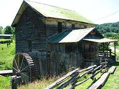 White's Mill is a historic grist mill located near Abingdon, Washington County, Virginia. It dates to the mid-19th century, and is a frame two-story structure resting on a down slope basement with a full attic sheltered by a gable roof. It has a Fitz waterwheel and great gear wheel, buhr runs, roller mills, elevators and bolting machinery. Associated with the mill are the contributing earthen race which feeds directly into the wooden race and onto the wheel and an early coursed rubble limestone dam.[3] The mill remains in working condition.