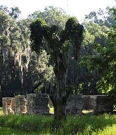 White Hall Plantation House Ruins and Oak Avenue is a historic plantation site located near Ridgeland, Jasper County, South Carolina. The site consists of the ruins of a brick house with tabby wings and twin tabby flanking outbuildings; a tabby retaining wall; and a massive double avenue of oaks planted in the late-18th or early-19th century. The plantation house was built between 1771 and 1776, then enlarged between 1786 and 1791. The house at White Hall burned about 1870 and was not renovated or occupied afterward.[2][3]