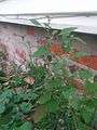 It tends to grow upright at first, reaching heights of 10–150 cm (rarely to 3 m), but typically becomes recumbent after flowering (due to the weight of the foliage and seeds) unless supported by other plants. The leaves are alternate and varied in appearance. The first leaves, near the base of the plant, are toothed and roughly diamond-shaped, 3–7 cm long and 3–6 cm broad. The leaves on the upper part of the flowering stems are entire and lanceolate-rhomboid, 1–5 cm long and 0.4–2 cm broad; they are waxy-coated, unwettable and mealy in appearance, with a whitish coat on the underside. The small flowers are radially symmetrical and grow in small cymes on a dense branched inflorescence 10–40 cm long.[2][3][4][10]