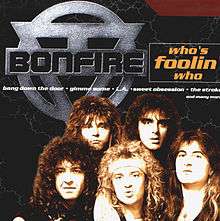 Who's Foolin' Who is the second compilation by the German hard rock band Bonfire. It is a greatest hits collection that was released by BMG International in 2000. The album contains material from Bonfire's first four albums. The title is from one of the band's songs from the album Point Blank.