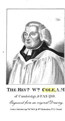 William Cole (3 August 1714 – 16 December 1782), was a Cambridgeshire clergyman and antiquary.