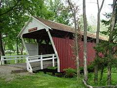 The Cutler-Donahoe Covered Bridge (1870) on display in the park.