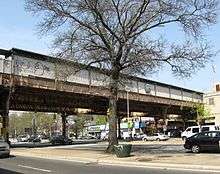 Woodhaven Boulevard is an elevated station on the BMT Jamaica Line of the New York City Subway, located in Woodhaven, Queens.[3] It is served by the J train at all times and the Z train during rush hours in the peak direction.[4]