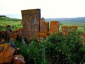 The memorial is located in the mountains 8 kilometres (5.0 mi) south-east of the ruins of the fortified Urartian settlement of Teyseba, also known as Odzaberd and also in close proximity to the modern-day village of Tsovinar. Geographically it is located at the south-east corner of Lake Sevan, which can be seen in the distance at a highpoint amongst the ruins of Khrber where the memorial lies within. There are a number of medieval khachkars, headstones, and tombs in Khrber. The oldest graves are located at the base of a hill just south of the ruins.[1]