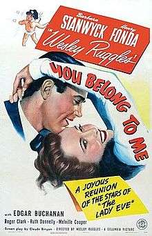 You Belong to Me is a 1941 American romantic comedy film produced and directed by Wesley Ruggles and starring Barbara Stanwyck and Henry Fonda. Based on a story by Dalton Trumbo, and written by Claude Binyon, the film is about a wealthy man who meets and falls in love with a beautiful doctor while on a ski trip. After a courtship complicated by his hypochondria, she agrees to marry him on the condition that she continue to practice medicine. His jealousy at the thought of her seeing male patients, however, soon threatens their marriage. The film was released in the United Kingdom as Good Morning, Doctor, and was remade as Emergency Wedding in 1950.