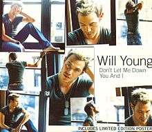 "You and I" is a pop song, co-written by Ed Johnson, Henry Johnson and Mike Peden, and performed by Pop Idol UK series 1 winner Will Young. It appeared on his debut album, From Now On, and was released as his fourth single, along with the track "Don't Let Me Down". It reached number two in the UK Singles Chart and number 27 in Ireland. The double A-side single was released in aid of Children in Need. CD2 included a limited edition poster.