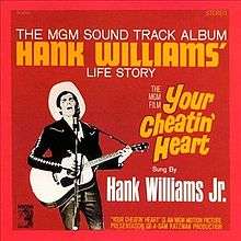 Your Cheatin' Heart is an album by American country music singer and songwriter Hank Williams Jr. The full title is: The MGM Sound Track Album Hank Williams' Life Story – The MGM Film Your Cheatin' Heart Sung by Hank Williams Jr. The album number is E/SE-4260.