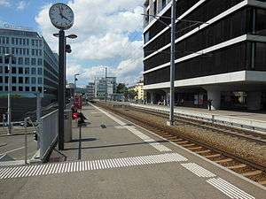 ![]() Zürich Saalsporthalle-Sihlcity station, with Sihlcity shopping centre to right | |||||||||||