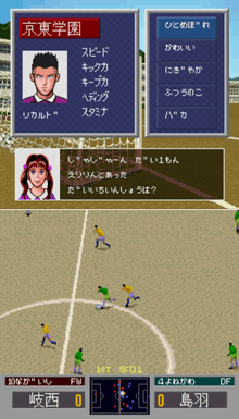 The game has some similarities with Hat Trick Hero, Aoki Densetsu Shoot! or any other soccer game with the left-right perspective, and Top Striker or Libero Grande because of the ability to play as just one player, instead of controlling the whole team. This feature would serve as a model for the "career mode" provided in most modern EA Sports games. There were many other improvements over the two original versions. One of the most important being the availability of creating and customizing an own character/football player and training with the instructor before each match, among other options. Coaches give out verbal reports that range between "perfect" and "needs improvement."