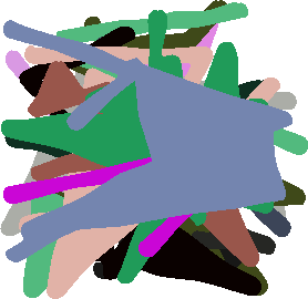 Debugging images from draw-something modified to use AARON’s new colour algorithm. Like I say, they’re debugging images. The colour is using a single choice probability and hasn’t been tested properly yet. I also need to distribute the forms better but that’s outside the control of the colour algorithm.